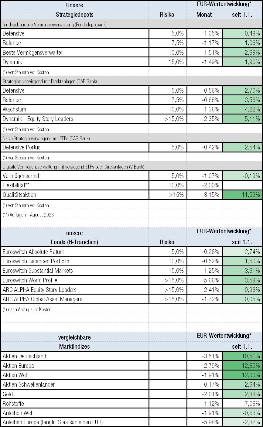 Wertentwicklung YTD – unsere Fonds und Strategien per 29.9.23