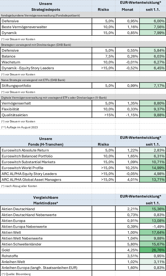 Übersicht Wertentwicklung 2024 – unsere Fonds und Strategien