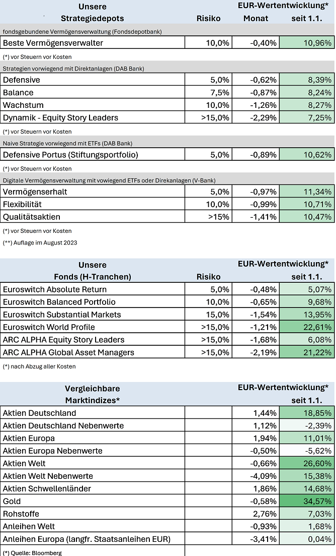 Übersicht Wertentwicklung 2024 – unsere Fonds und Strategien