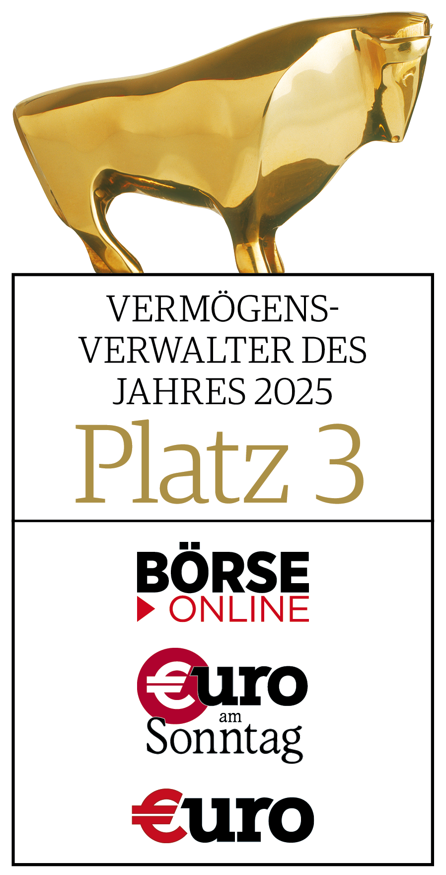 Die außergewöhnlichen Leistungen unserer Vermögensexperten, die zum Erhalt und Vermehrung Ihrer Investments beitragen, werden in regelmäßigen Abständen auch in Form von Auszeichnungen und Awards gewürdigt. Darüber freuen wir uns natürlich sehr.